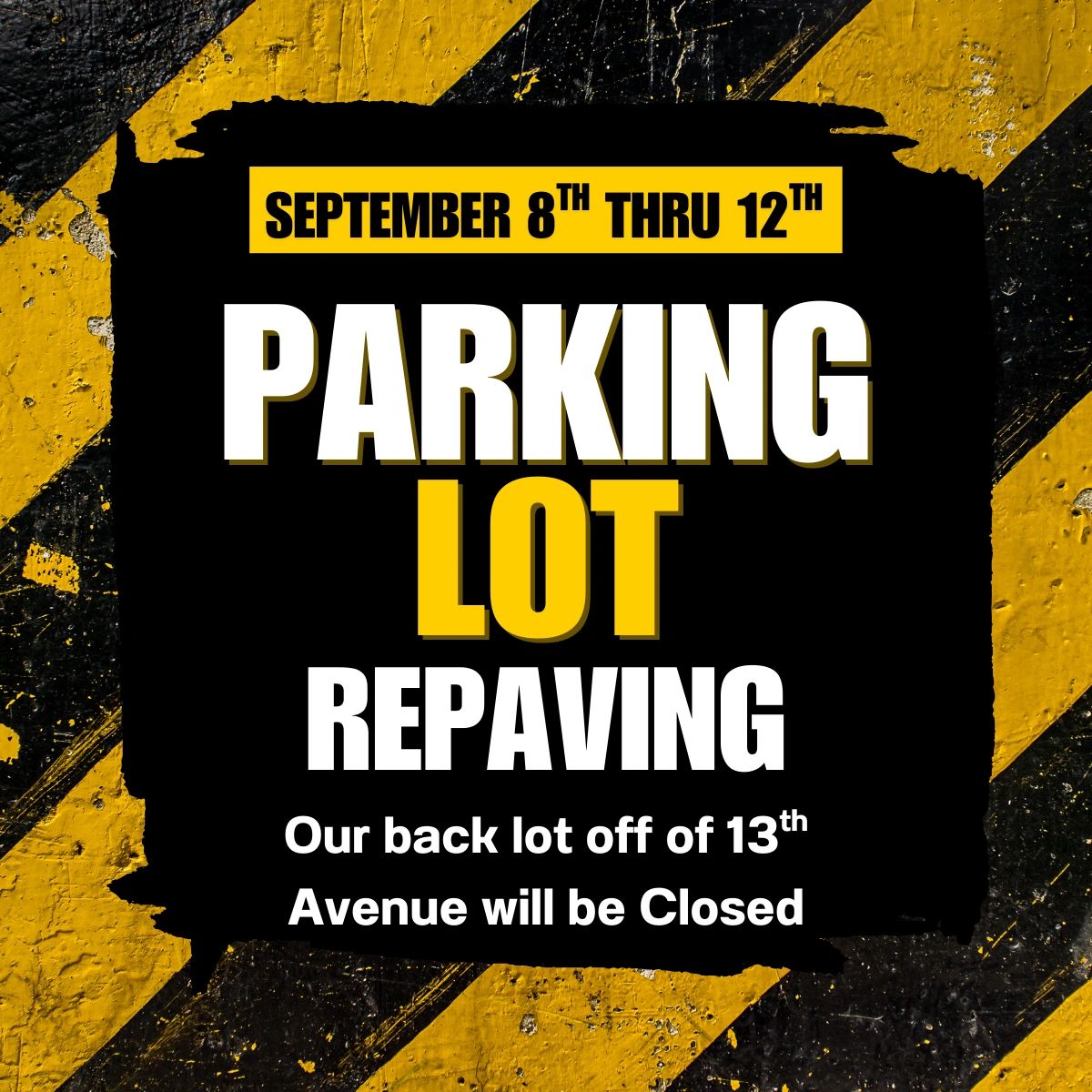 On September 8th through September 12th, our parking lot off of 13th avenue will be closed while a large pothole is repaved. Please use street parking or park in our small lot off of Patterson Street.